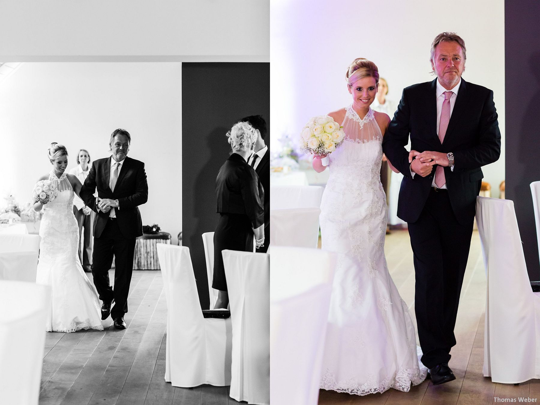 Auf dem Steg der Eventscheune St. Georg in Rastede sollte bei schönem Sonnenschein eine freie Trauung statt finden. Da es nun aber regnete, wurden schnell noch ein paar Pavillons für die freie Trauung aufgestellt. Da der Regen aber zu stark und der Steg auch richtig rutschig war, wurde ganz schnell umgeplant und die freie Trauung fand im Saal der Eventscheune St. Georg Rastede statt. Hier war es vor allem der tollen Martina Siems vom kleinen Königreich zu verdanken, dass alles so schnell umorganisiert werden konnte.