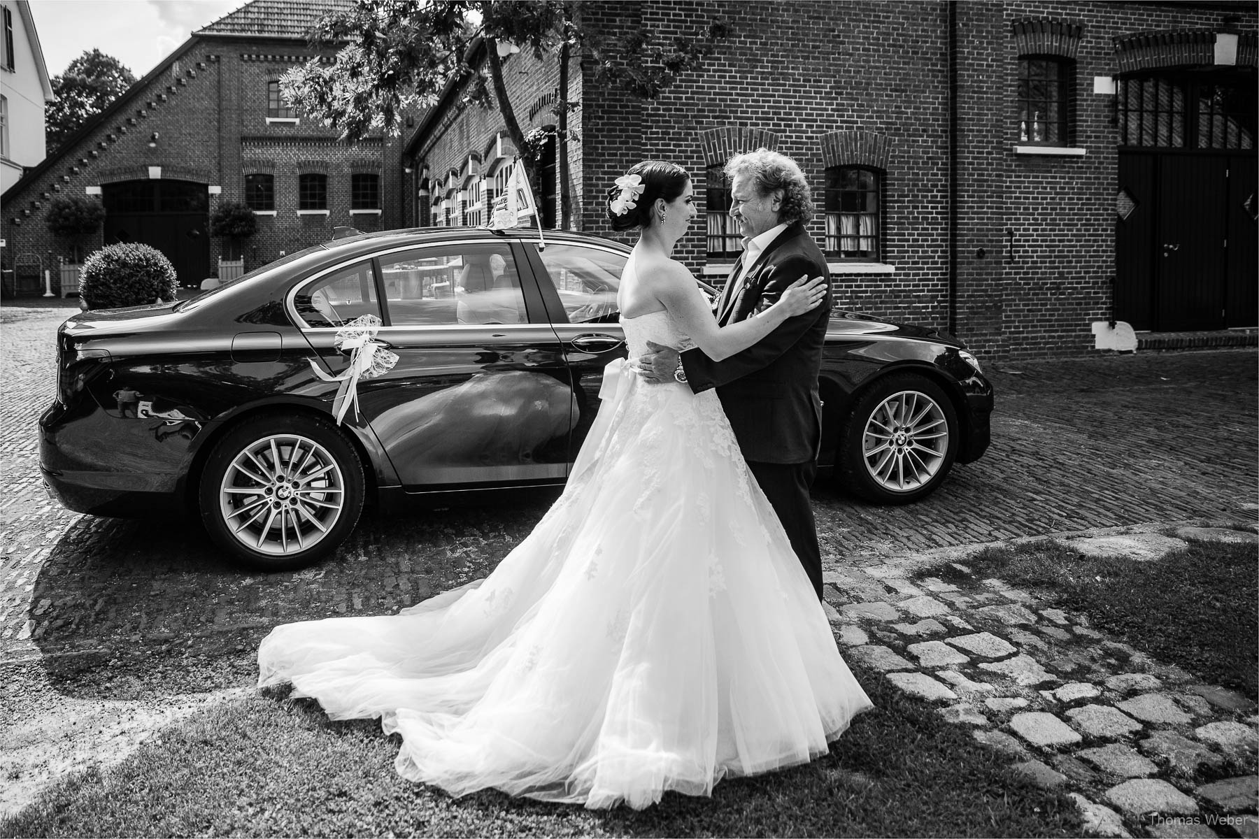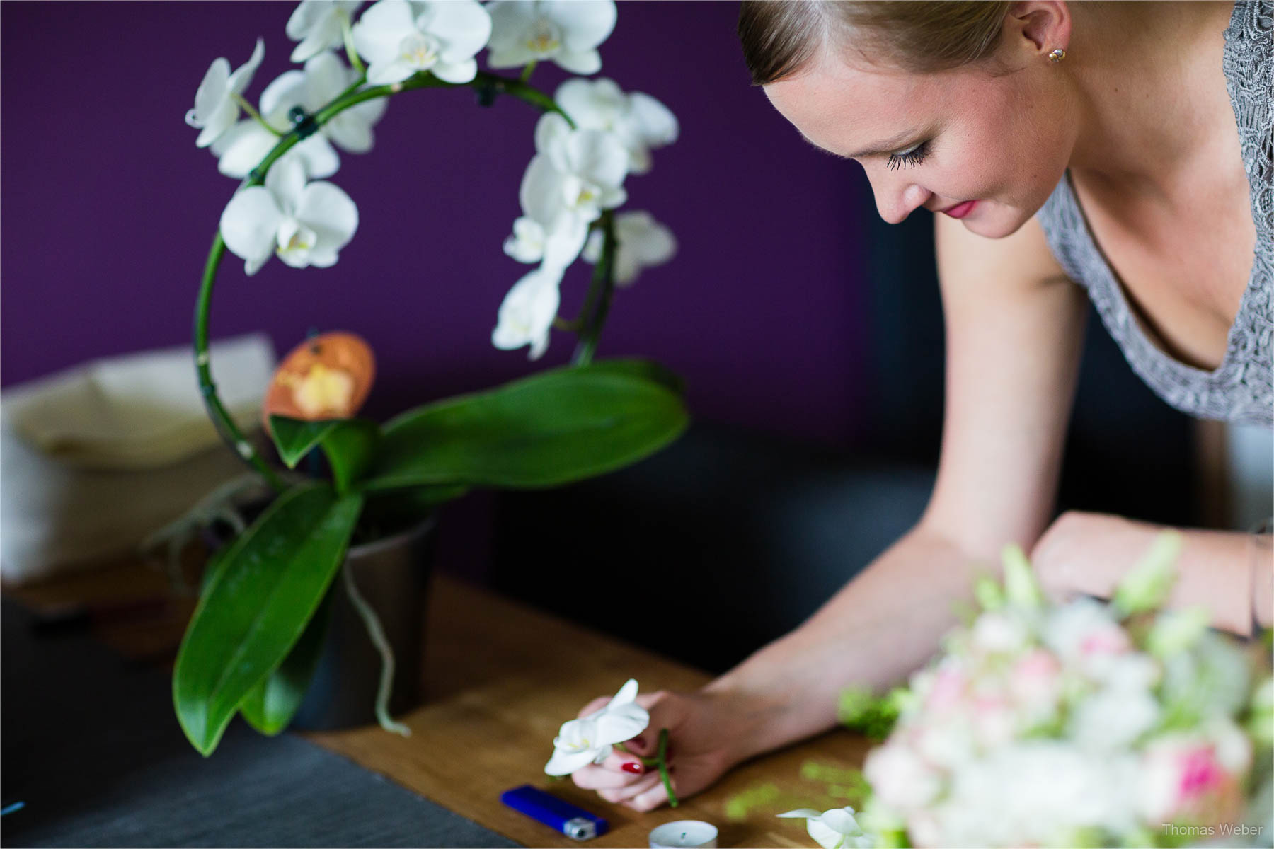 Der Bräutigam Dennis und sein Trauzeuge bereiteten sich in einem großen offenen Raum mit viel Tageslicht vor, so dass ich mich frei bewegen konnte und gutes Licht zum Fotografieren hatte. Danach fuhren wir zum Standesamt am Pferdemarkt in Oldenburg, wo die rechtlich verbindliche Trauung statt fand. Hier fiel schon auf, dass es ein sehr emotionaler Tag werden würde, dann die Verbundenheit der Familie war stark spürbar.